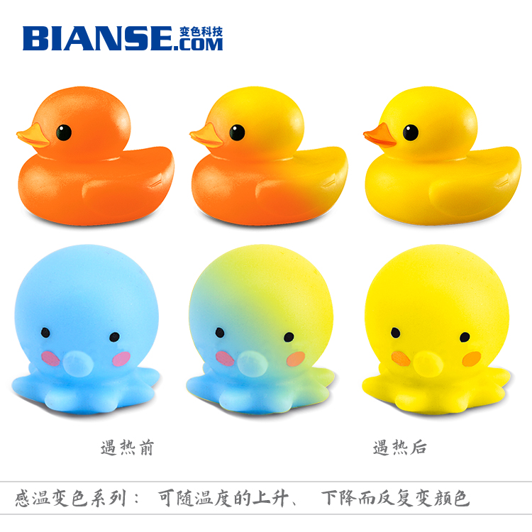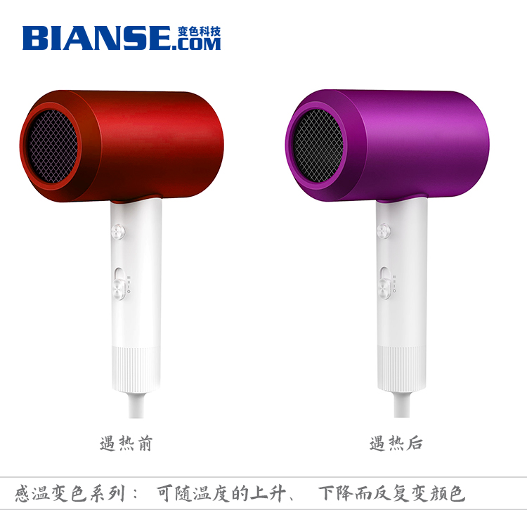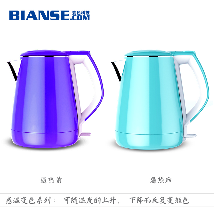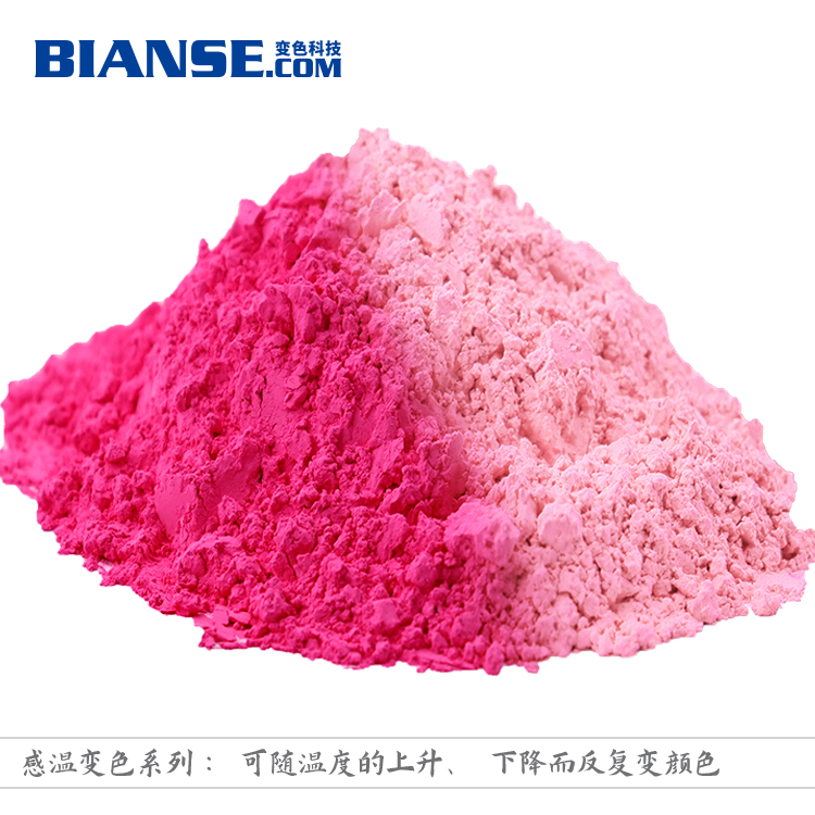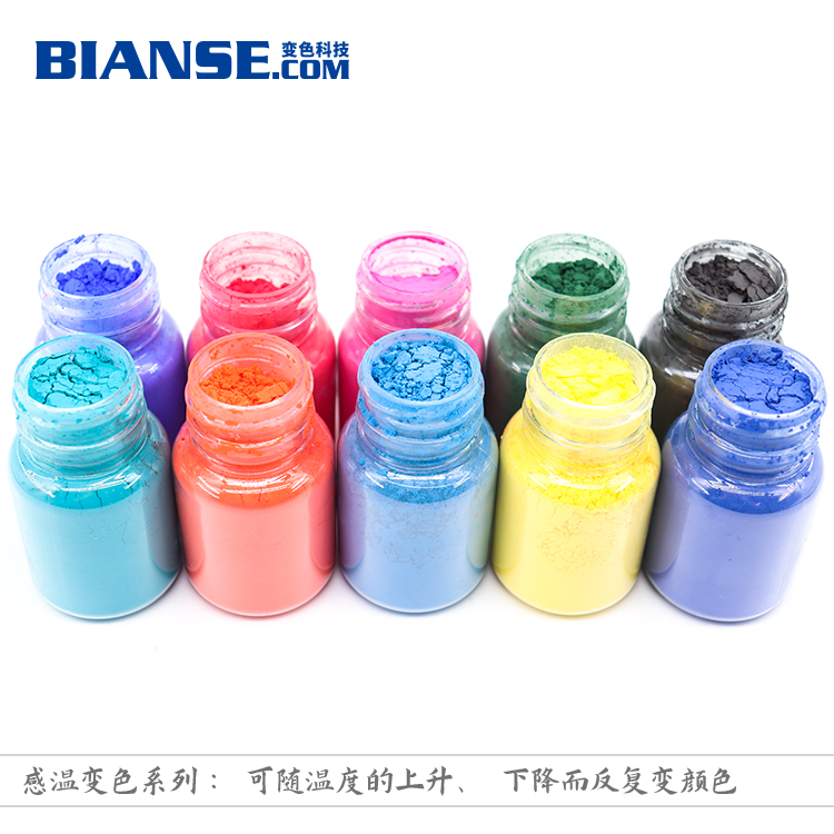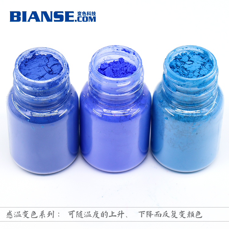 溫變粉使用:用于注塑、擠塑加工或澆鑄、模壓、固化成型時,變色顏料的用量為塑料量的0.5%-1.0%。變色顏料與塑料粒子要充分混和均勻(混合時可使用少量白油)。如果是普通顏料與變色顏料拼色,則普通顏料(或染料)的用量大約為變色顏料的0.5-2.5% 。