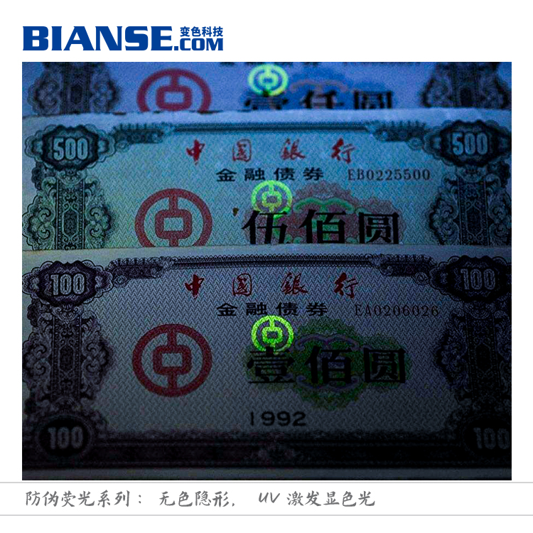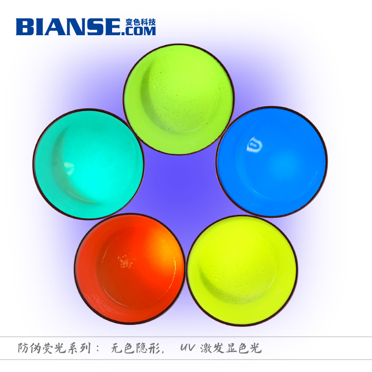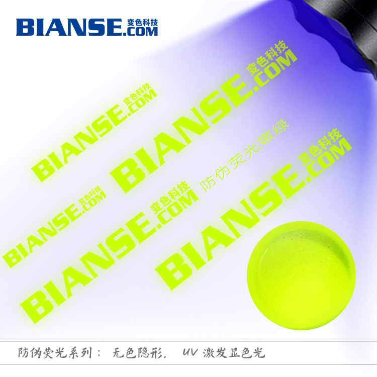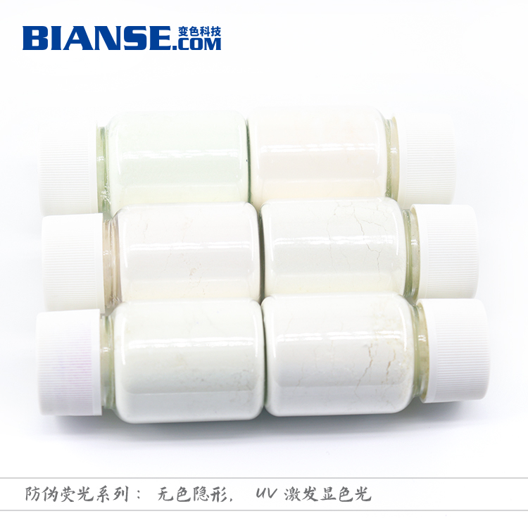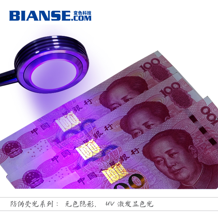 熒光粉即紫外熒光粉,又稱無色熒光粉和隱形粉,是由在粉中加入相應的可見熒光化合物而制成的。應用紫外光(300—400nm)照射激發而發出可見光的熒光色彩,稱為紫外熒光粉,主要功能是可以做防偽用途,