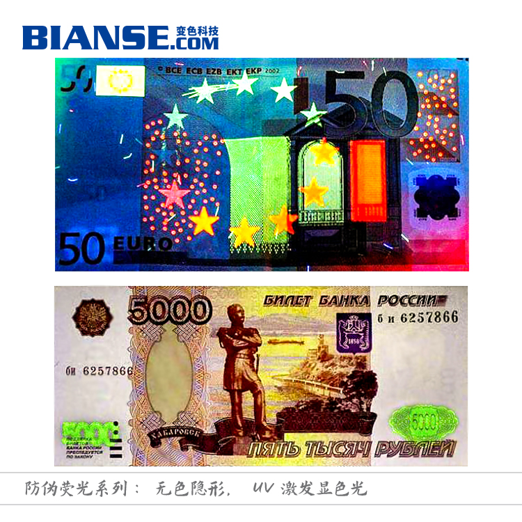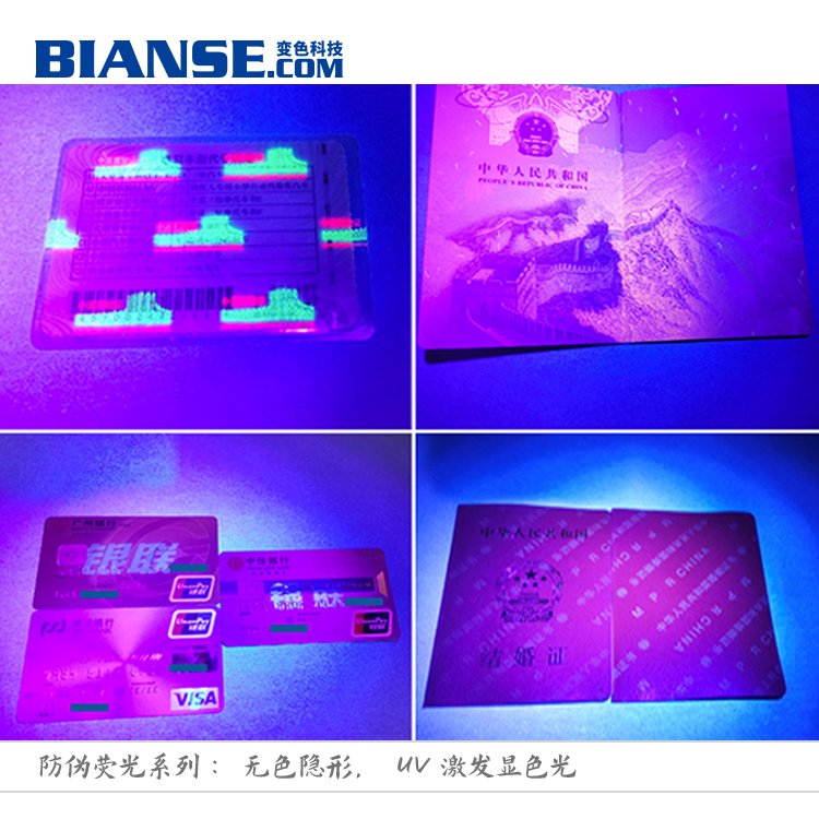 防偽油墨:適合任何印刷方式:膠印、UV膠印、凸印、UV柔版、絲印、UV絲印、絲印、移印、凹印、噴涂、印章墨水;