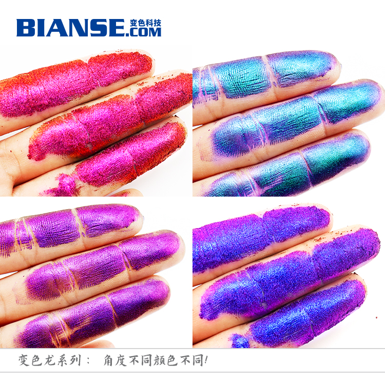 2.主要應用應用領域:汽車改色變色龍漆,變色龍指甲油、變色龍眼影等,摩托車、自行車、電動車和其它運輸工具,魚竿釣具、滑雪橇、高爾夫球棒、頭盔、鞋和其它運動設備,以及各種塑料注塑。