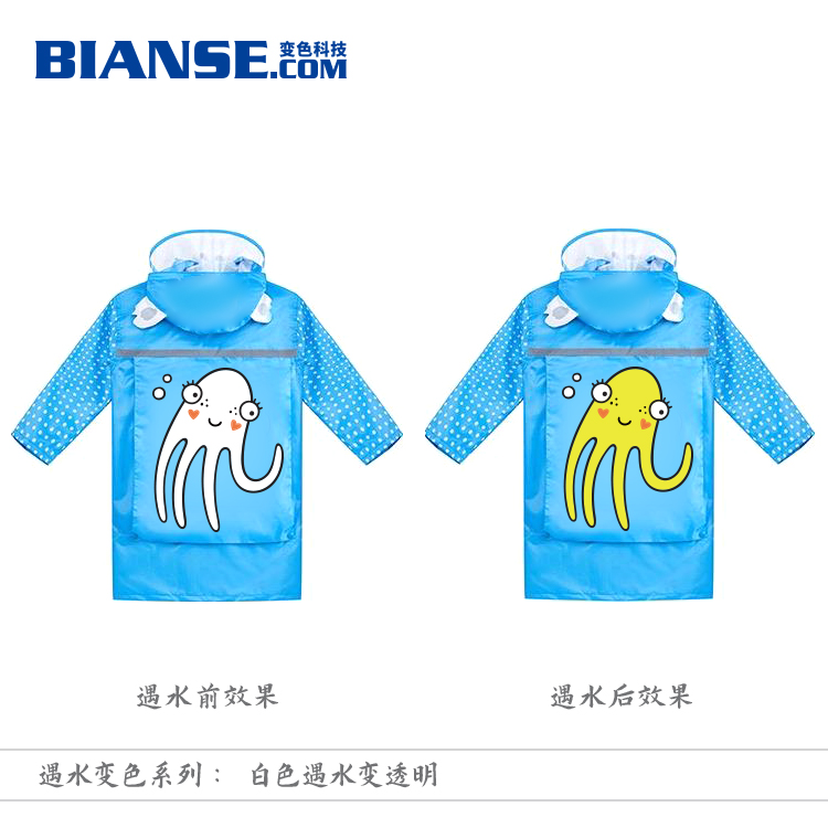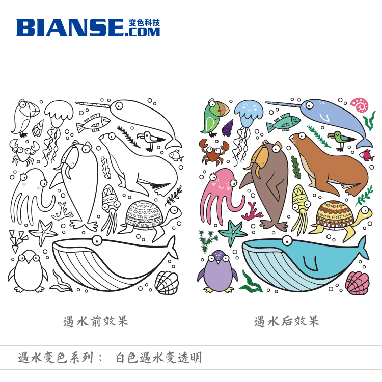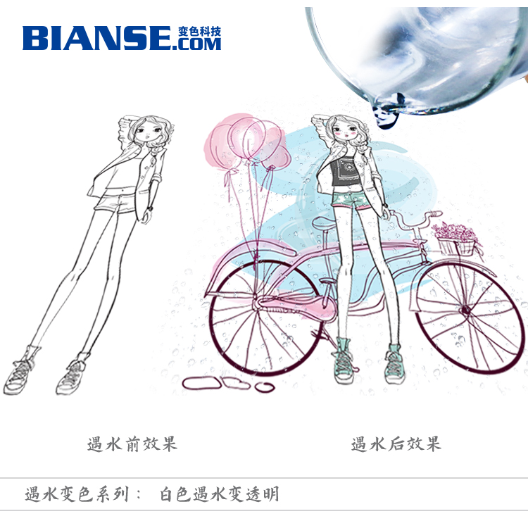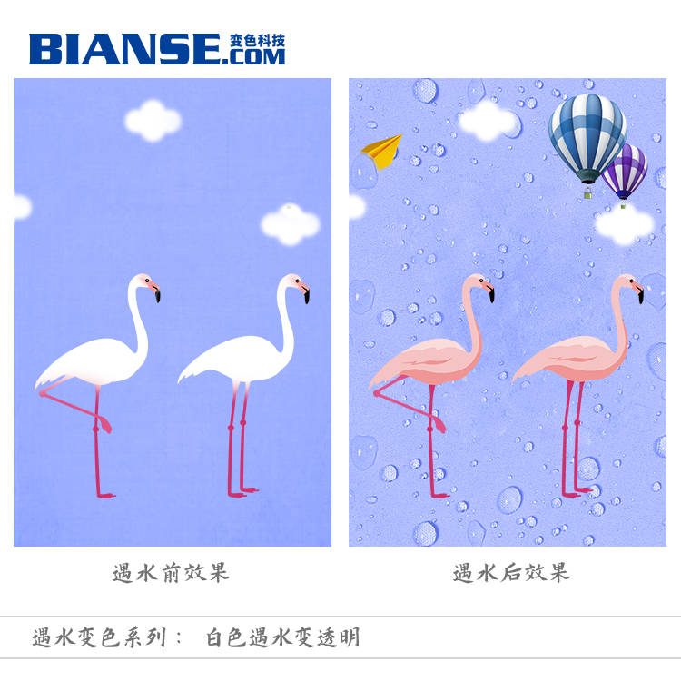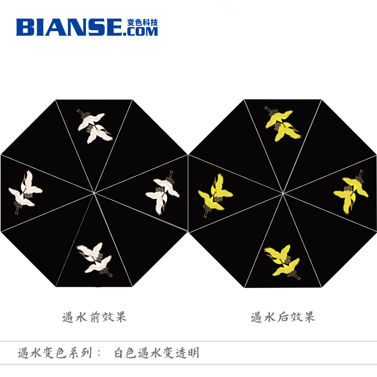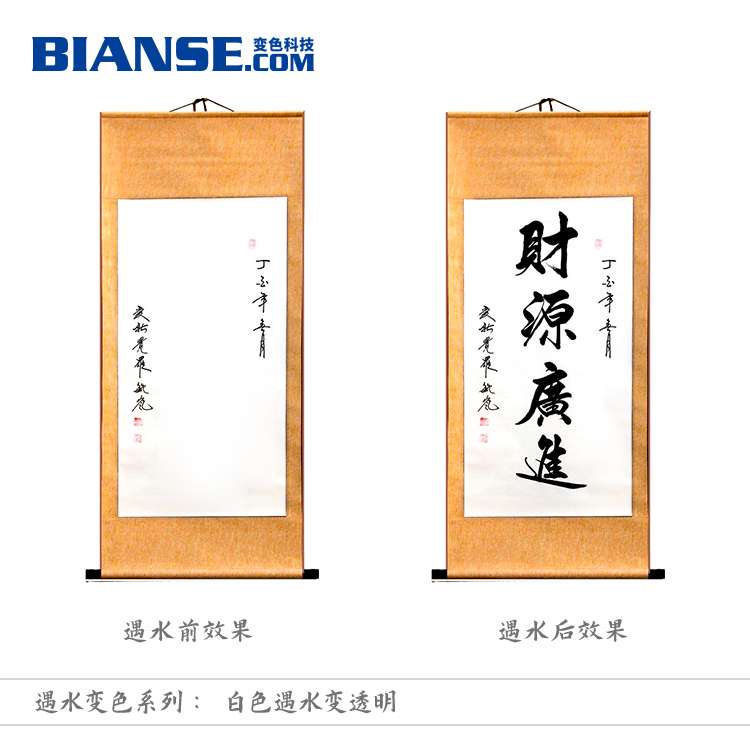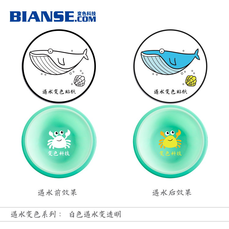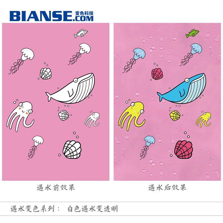 遇水變透明油墨是水性絲印墨本身呈白色,遇水后變透明,干后還原。由于遇水變透明油墨不含有害物料,已獲得SGS EN71-3,MSDS檢測(cè),是一種安全的水性絲印變色墨,適宜印制奇妙畫布,不干膠貼紙,雨傘等。